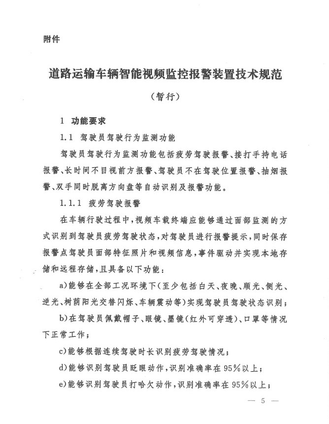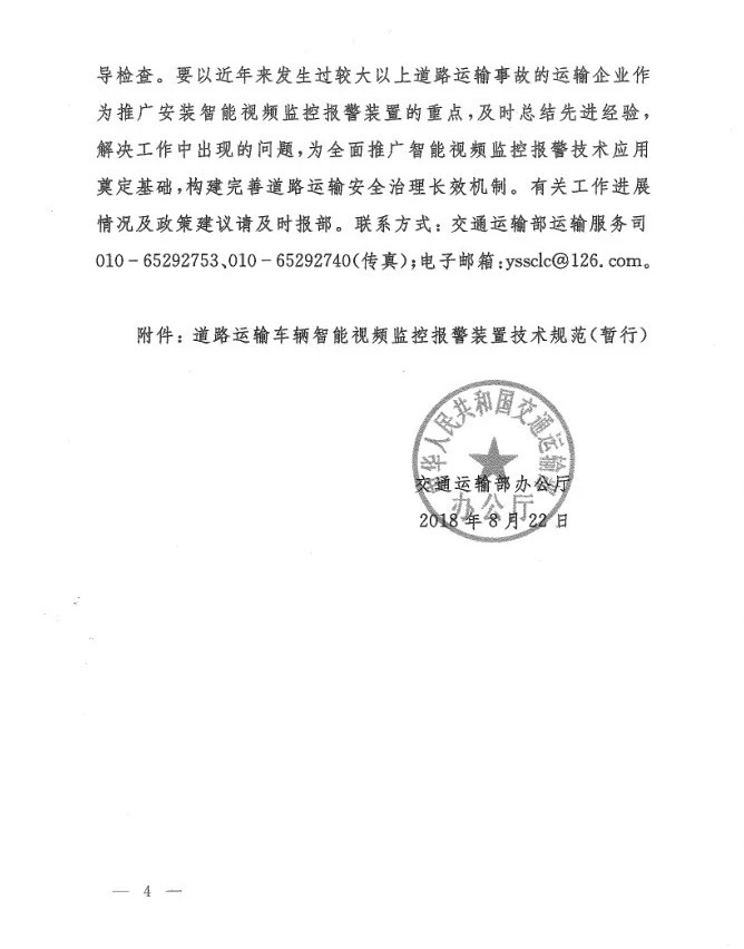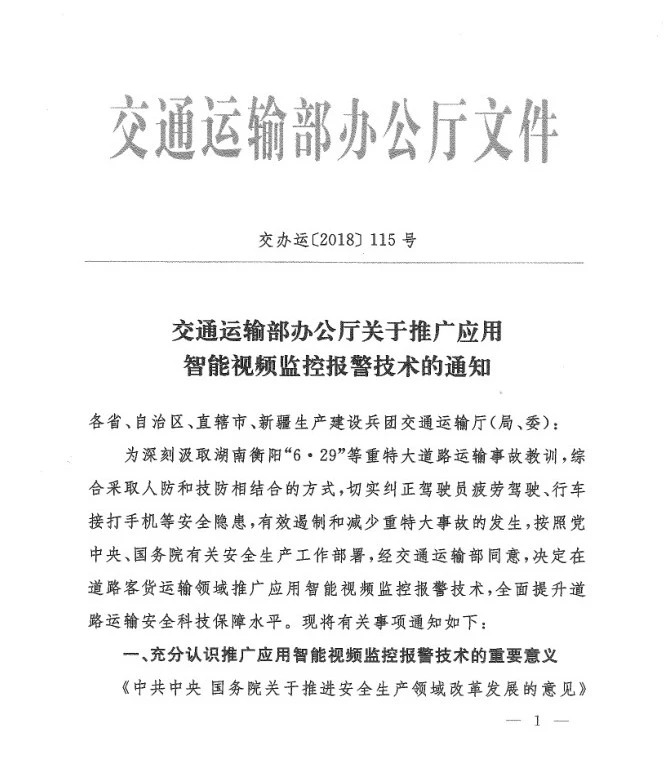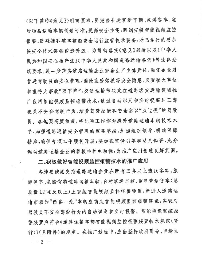 2018年交通運輸部辦公廳關于推廣應用智能視頻監控報警技術通知文件: