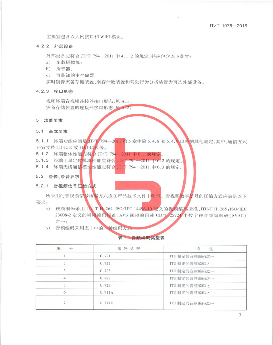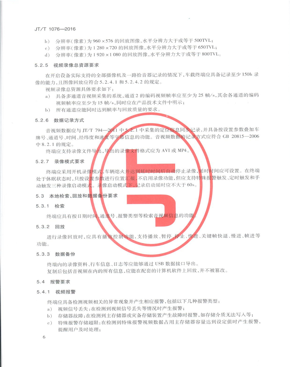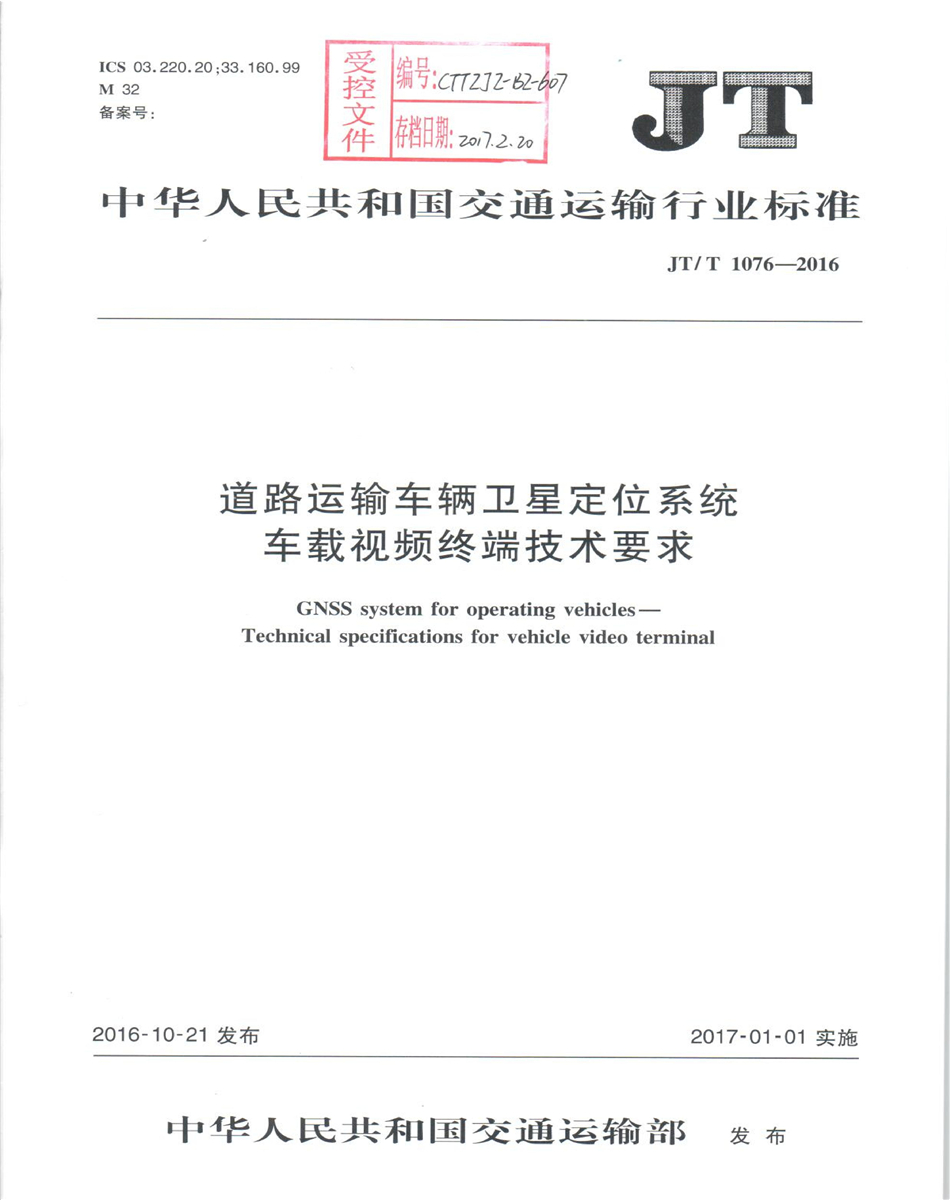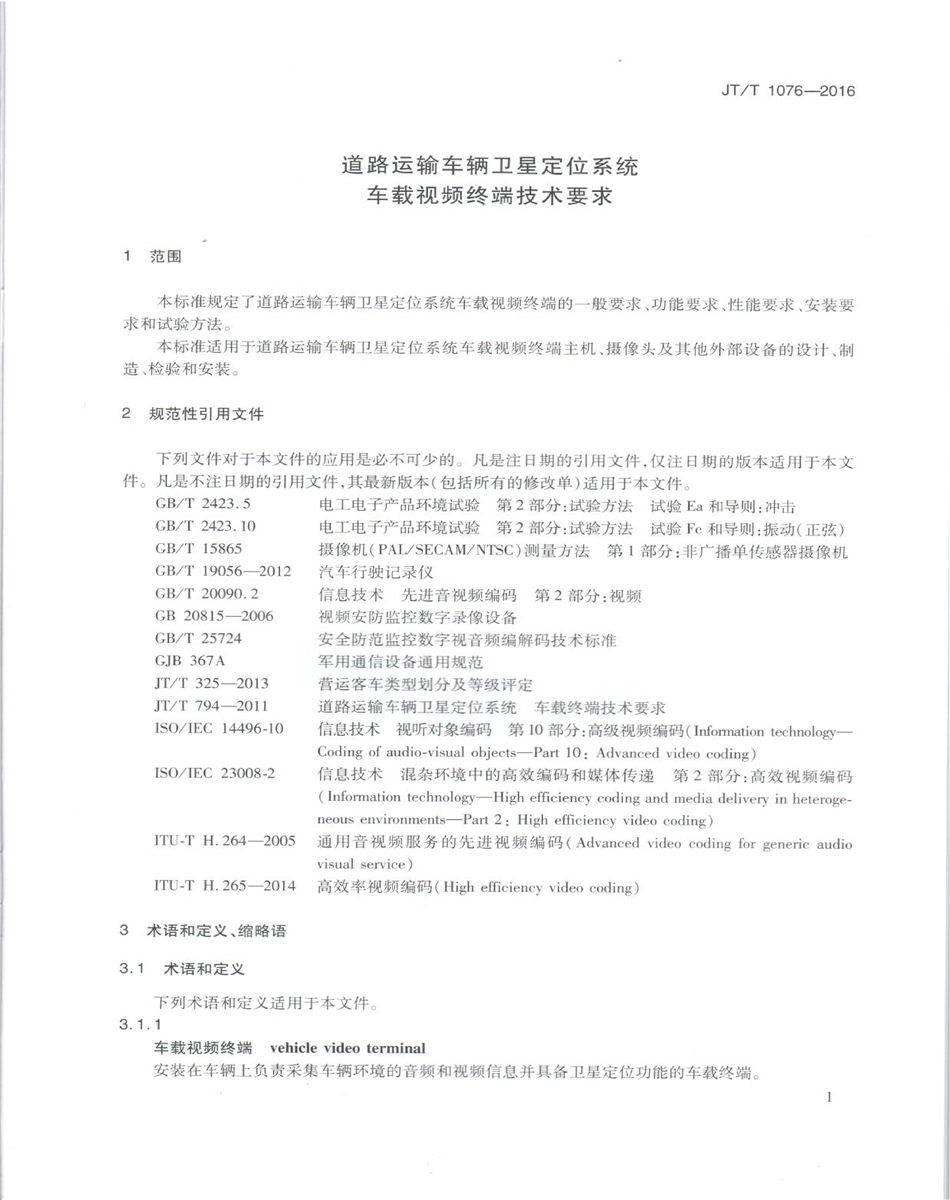 JT/T 1076-2016道路運輸車輛衛星定位系統車載視頻終端技術要求