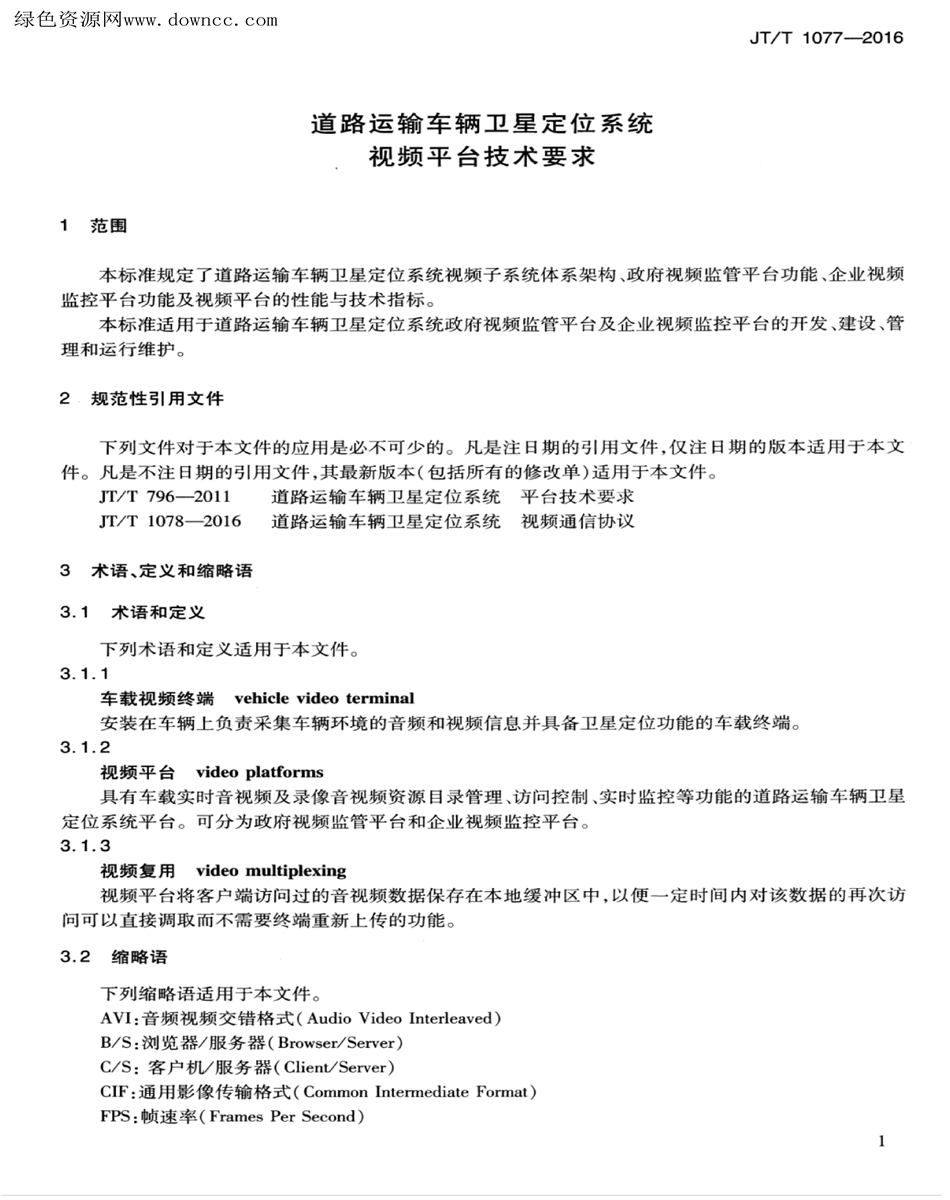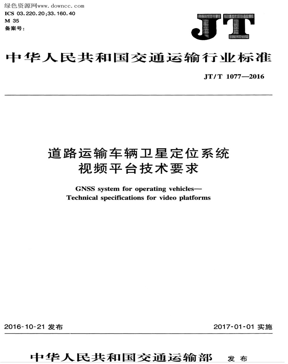 JT/T 1077-2016道路運輸車輛衛星定位系統視頻平臺技術要求