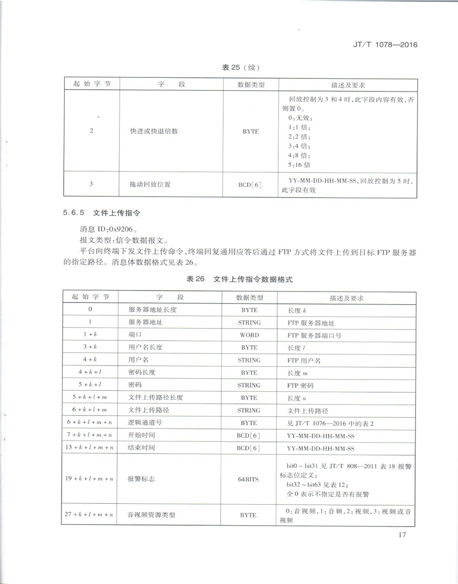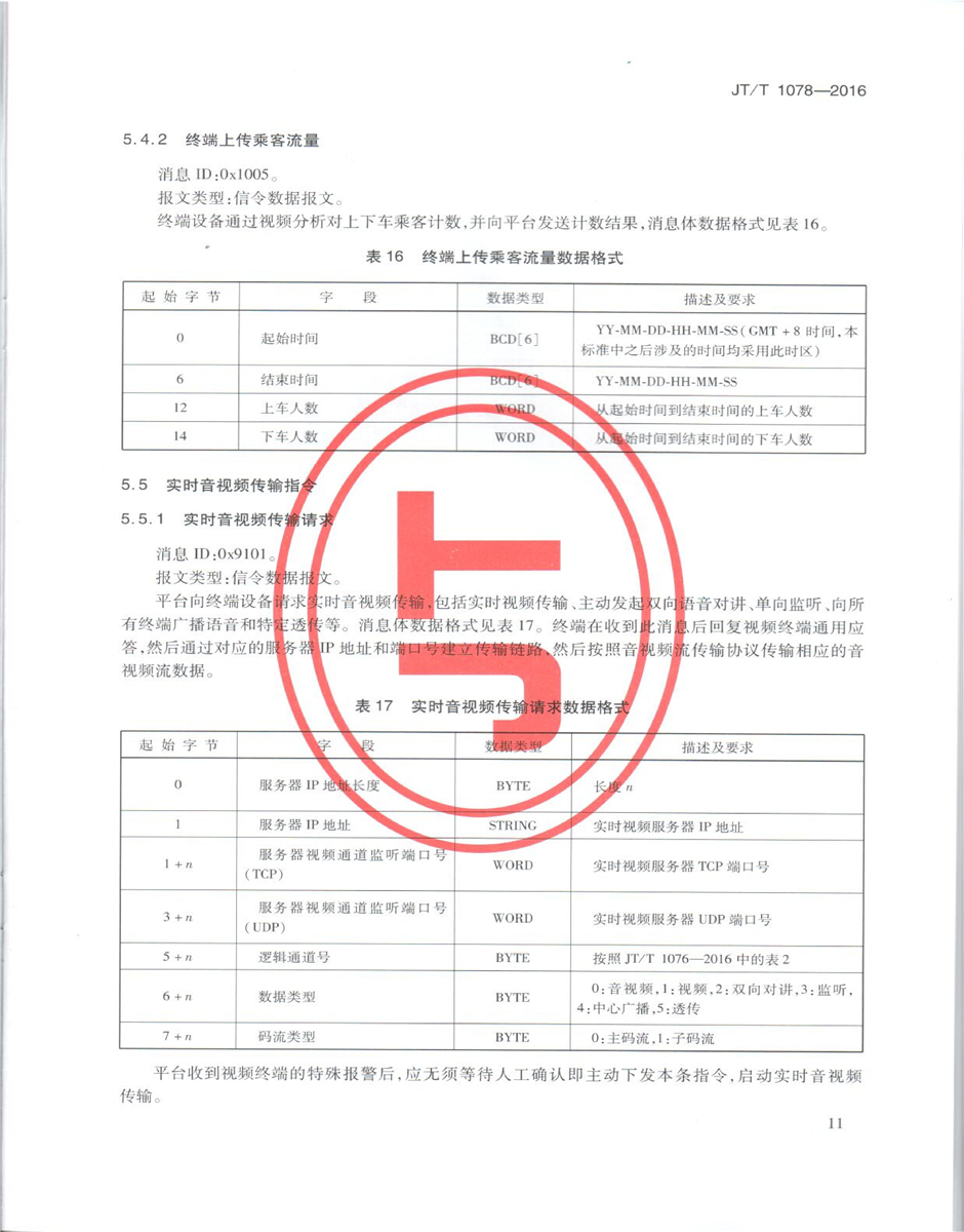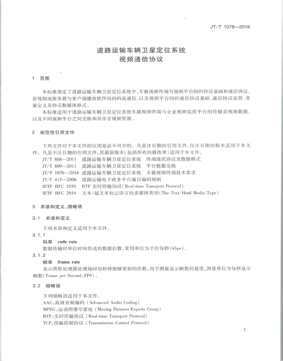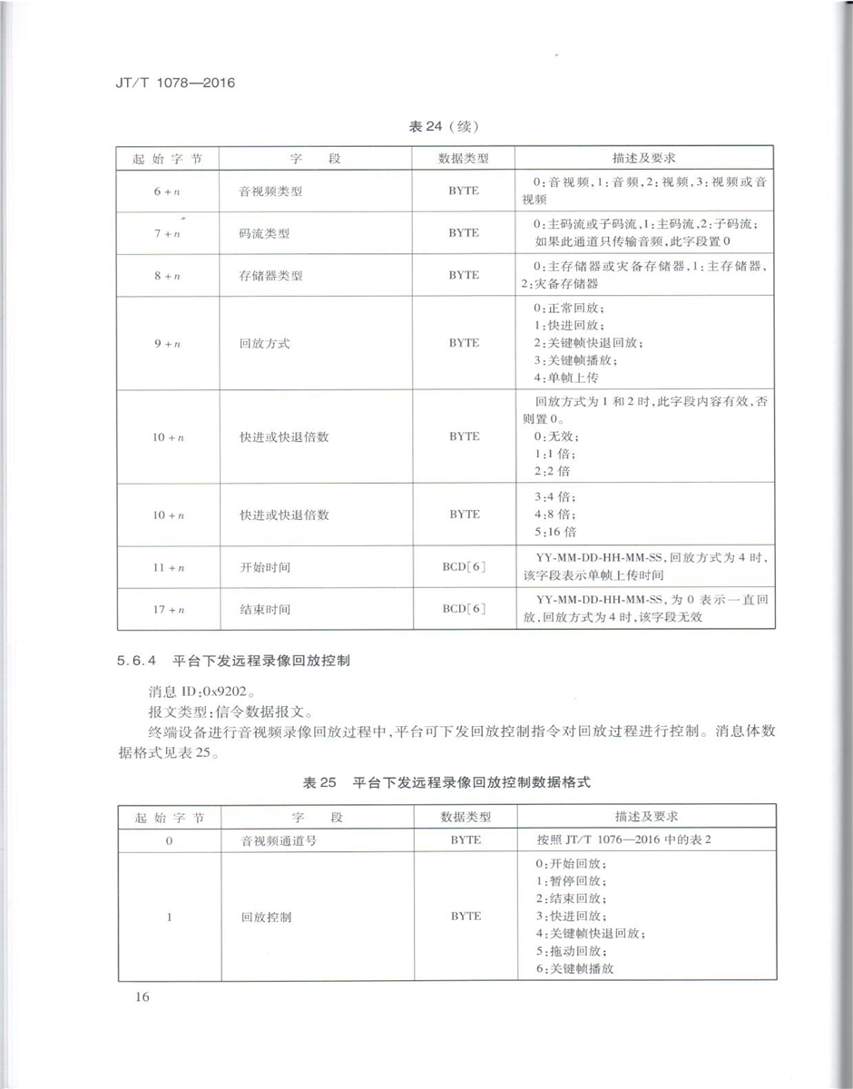 JT/T 1078-2016道路運(yùn)輸車輛衛(wèi)星定位系統(tǒng) 視頻通信協(xié)議
