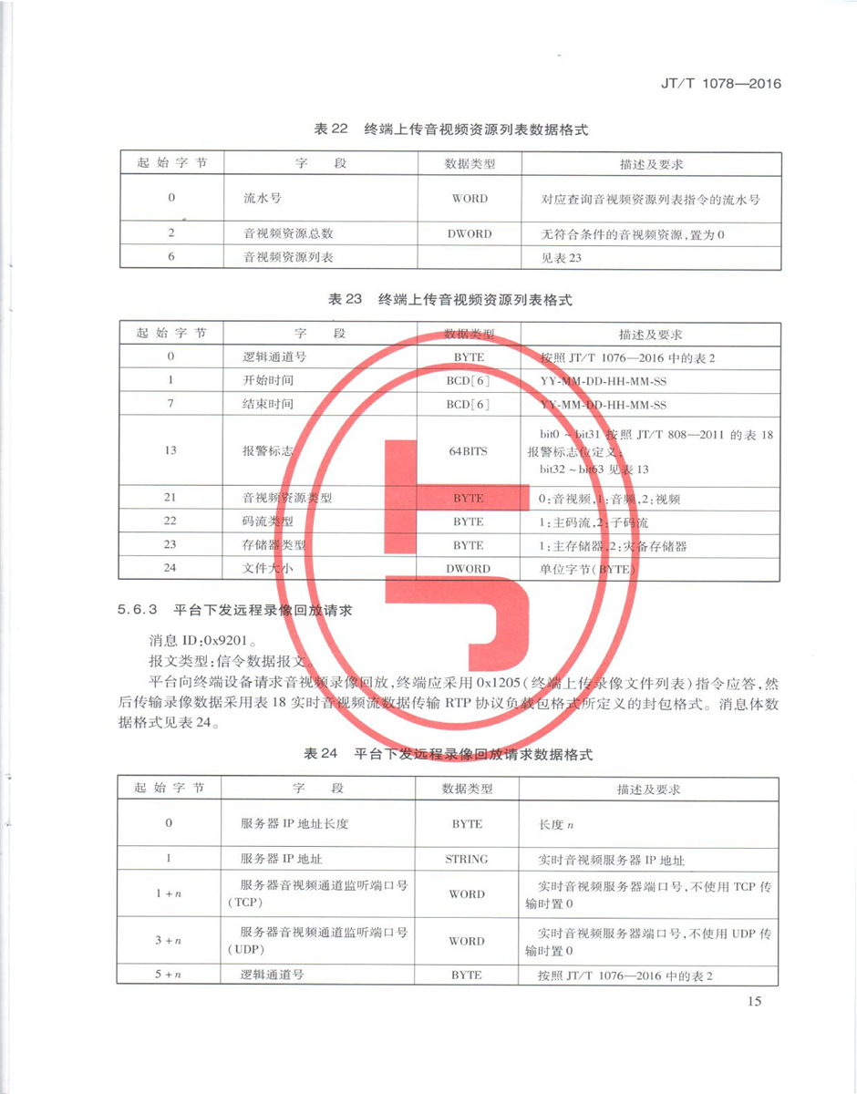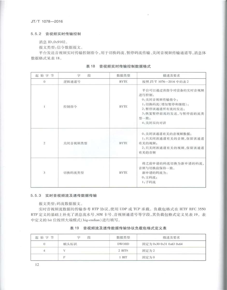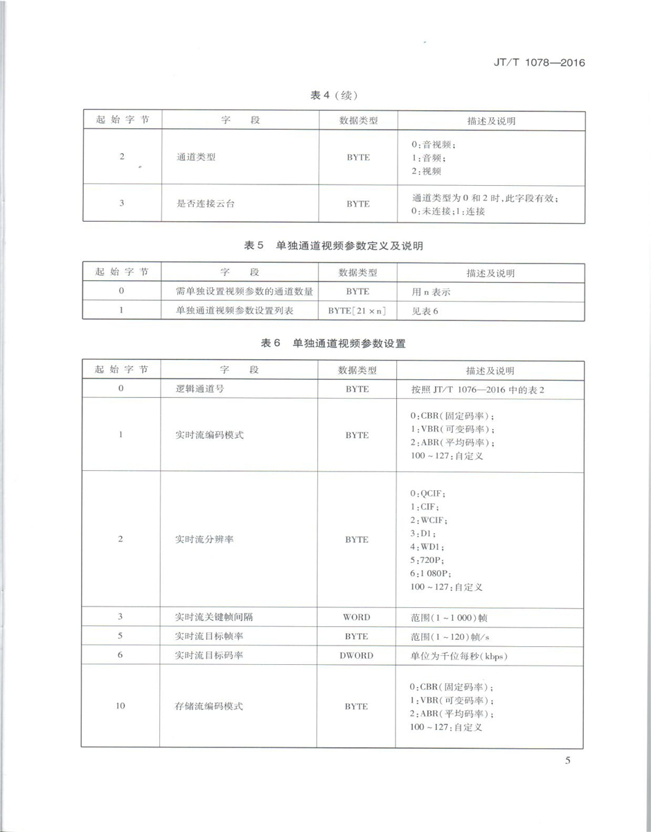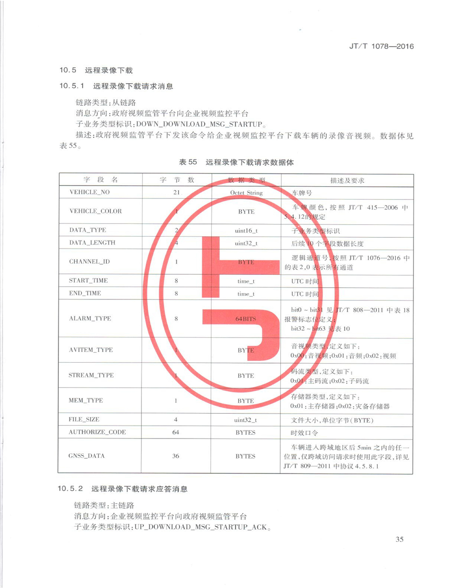 JT/T 1078-2016道路運(yùn)輸車輛衛(wèi)星定位系統(tǒng) 視頻通信協(xié)議