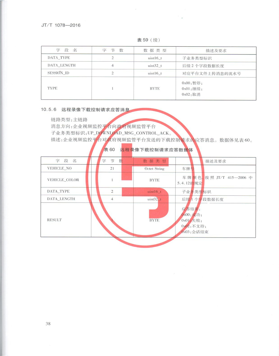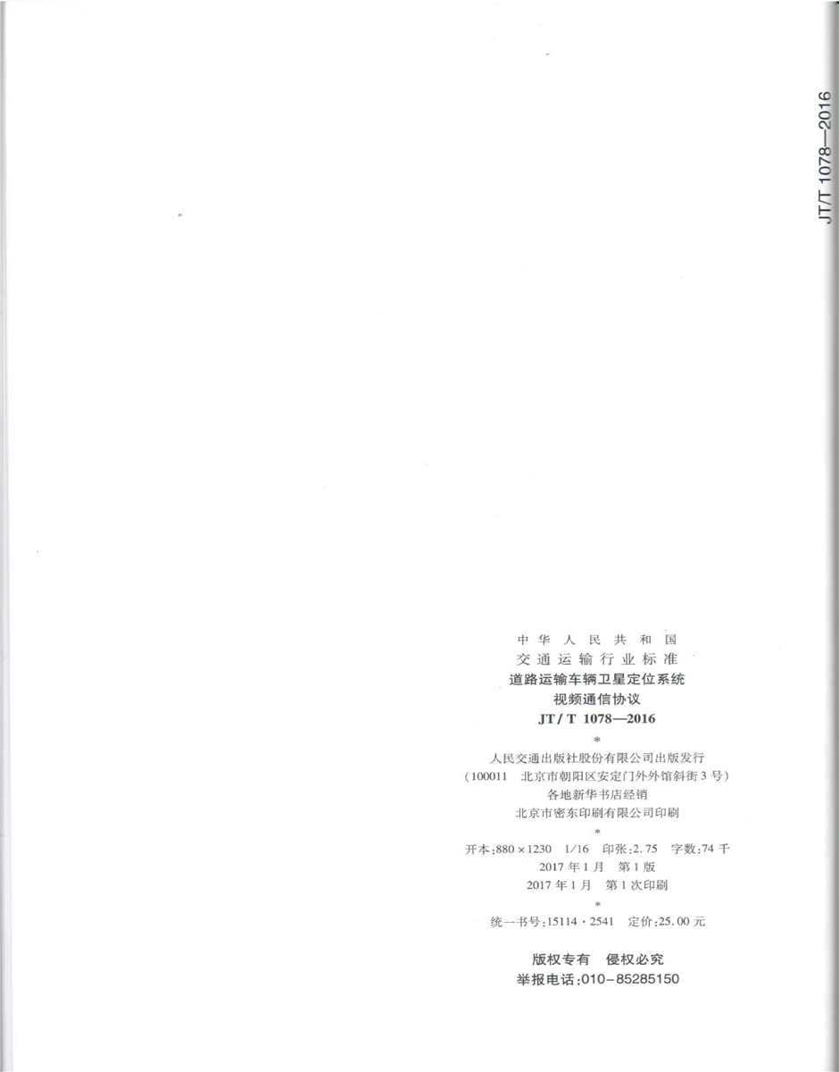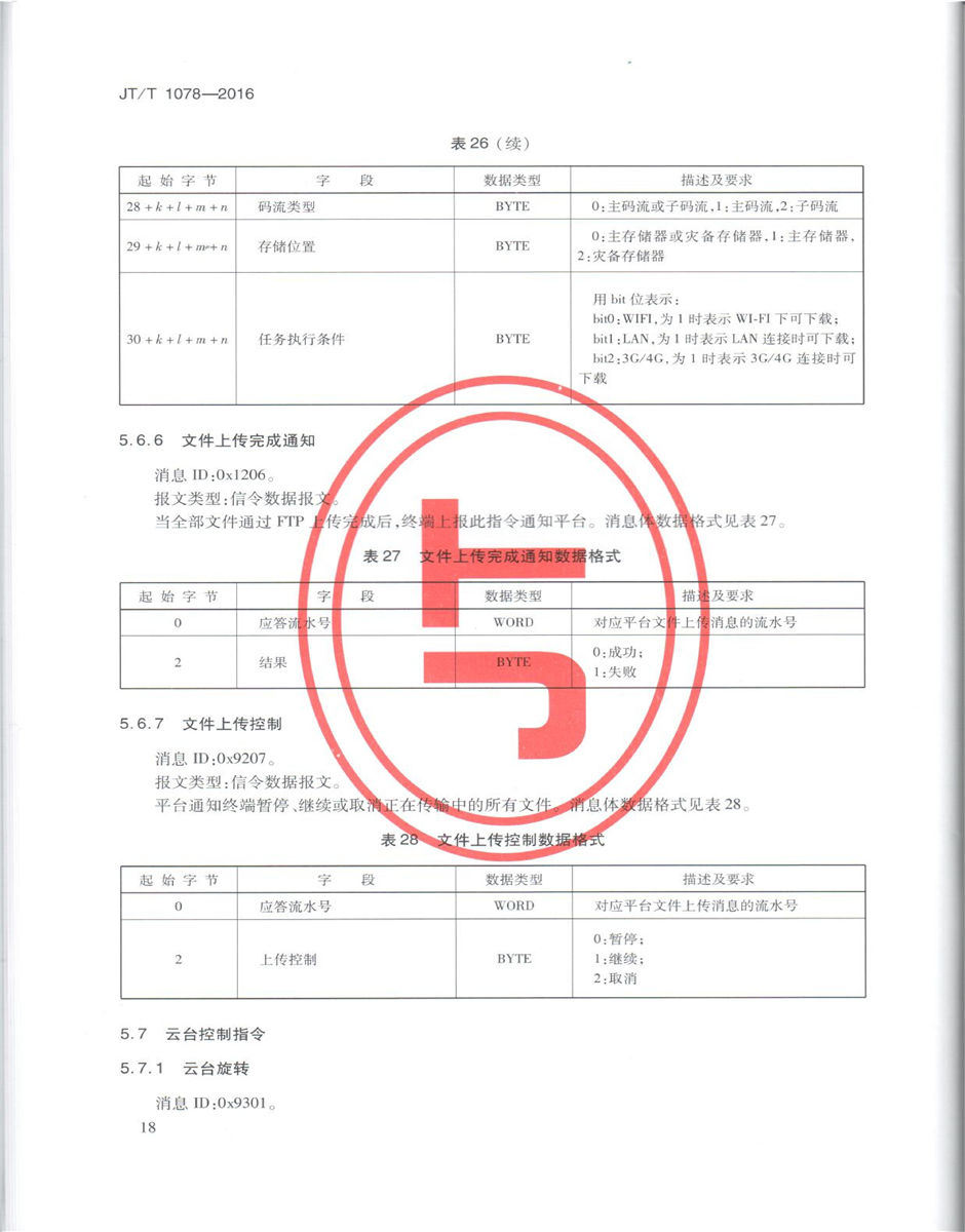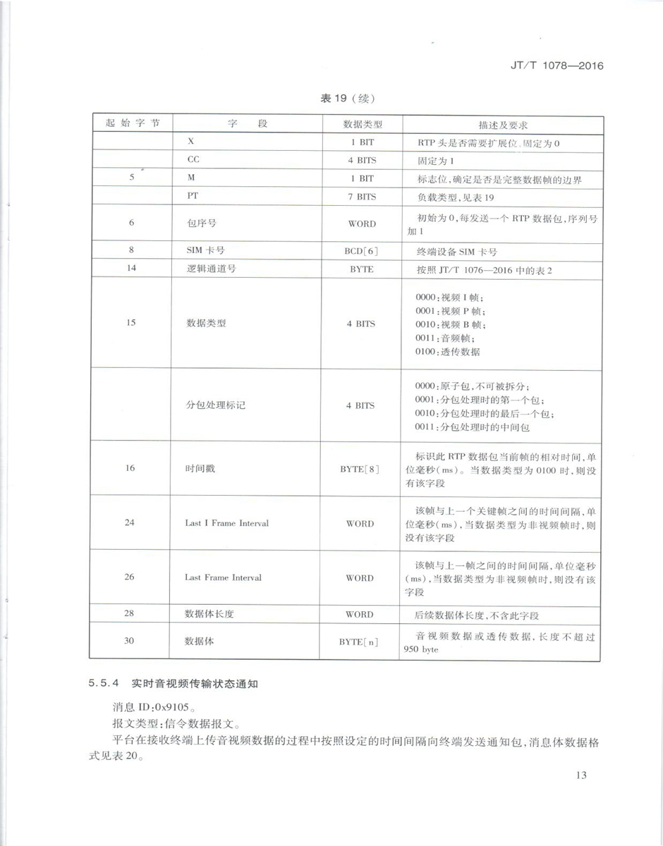 JT/T 1078-2016道路運(yùn)輸車輛衛(wèi)星定位系統(tǒng) 視頻通信協(xié)議
