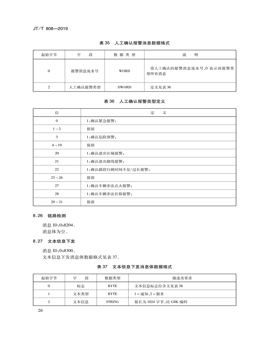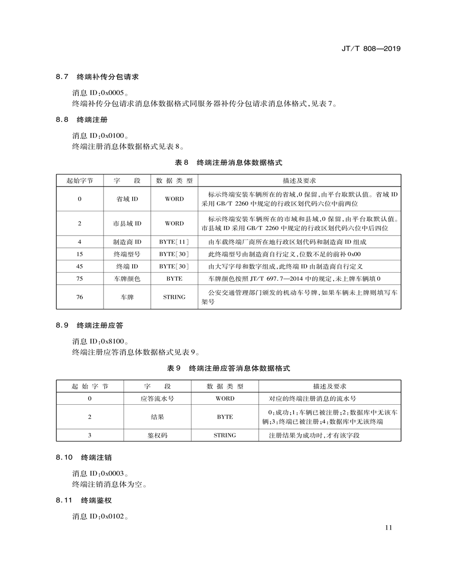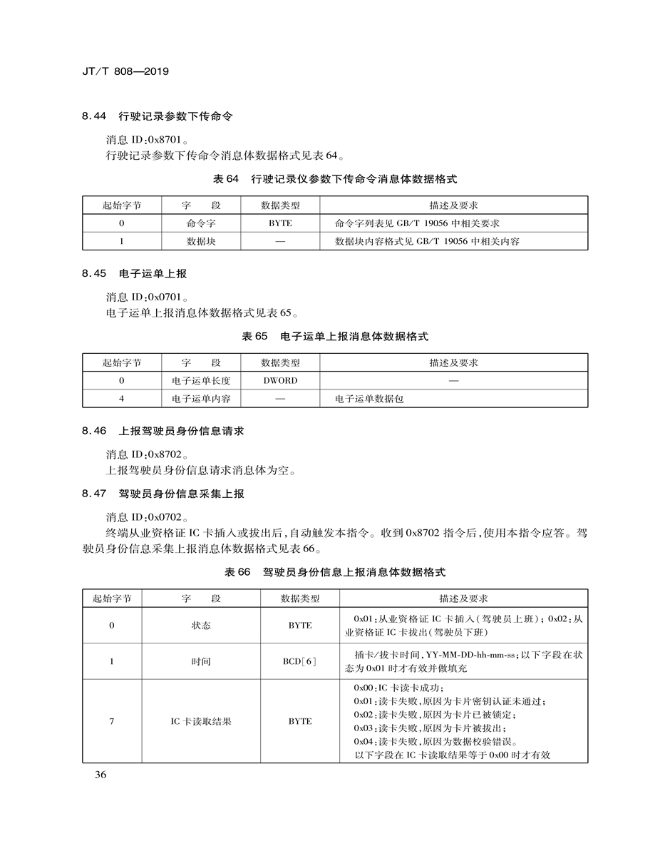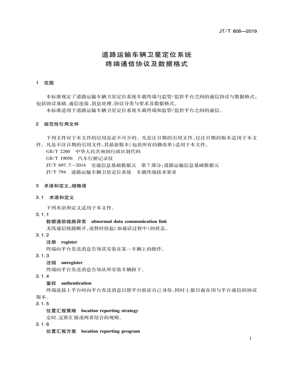 JT/T808-2019道路運(yùn)輸車(chē)輛衛(wèi)星定位系統(tǒng)(終端技術(shù)規(guī)范)