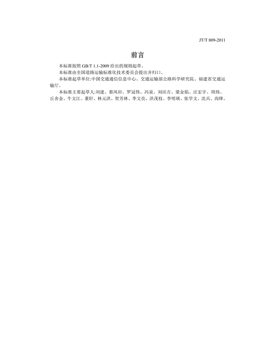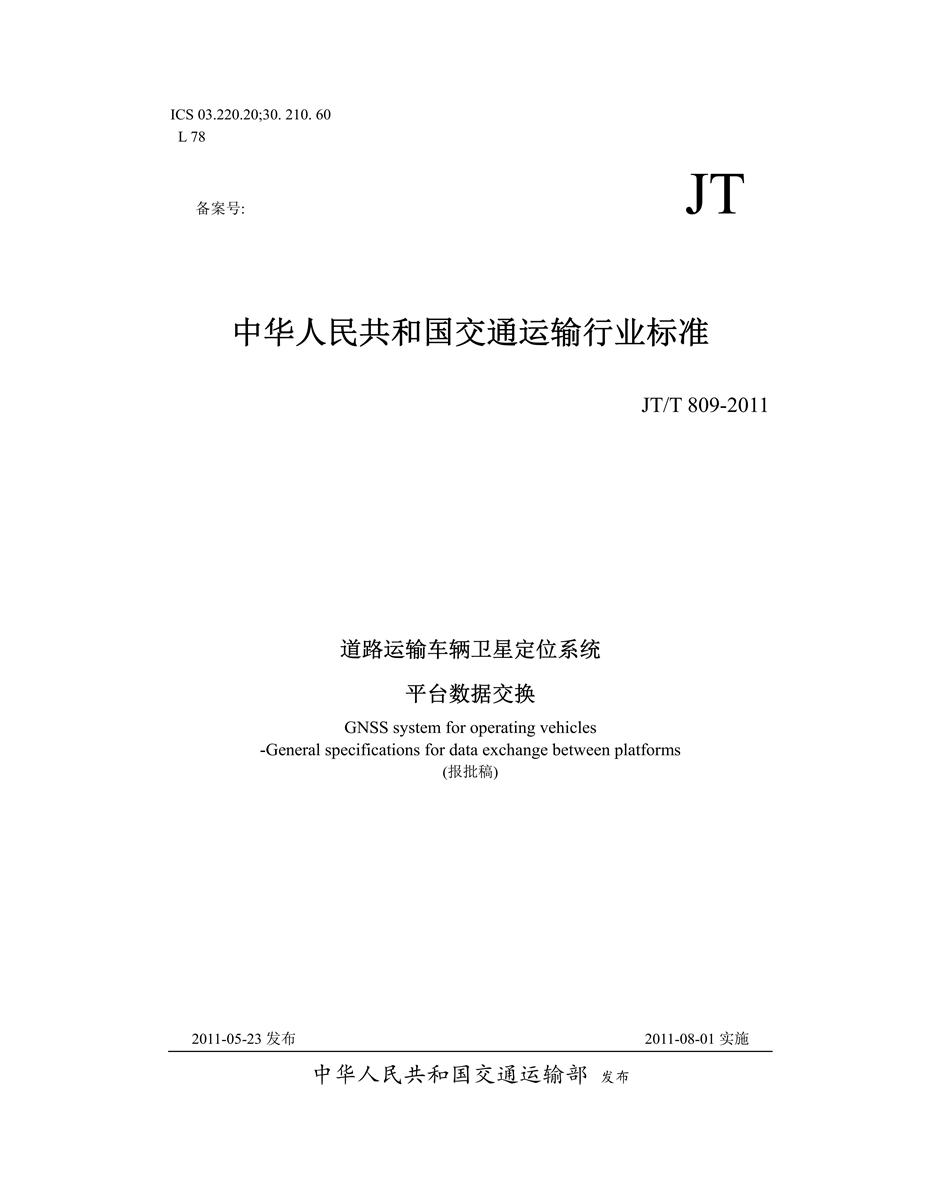 JT/T809-2011道路運輸車輛衛(wèi)星定位系統(tǒng)(平臺數據交換)