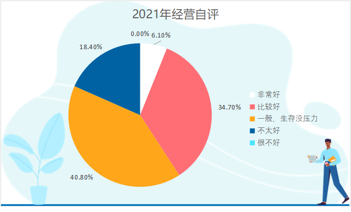2021年應該是行業發展環境相對較差的一年,具體表現為政策驅動乏力,監管、獎懲趨嚴,傳統服務低價競爭激烈,跨界競爭加劇,服務主體(運輸企業)需求下降、跨界競爭加劇(新模式),不過細分市場、后市場、數據增值服務帶來了不少機會,也就是說車聯網行業存量廝殺已經進入白熱化階段,在新興領域開辟疆土成為不錯的選擇。雖然行業發展環境一般,但是大多數公司都認為自己經營的還不錯,只有18.4%的公司認為自己在2021年的發展不太好。